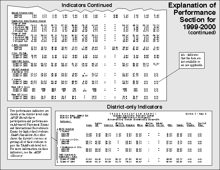 For a more detailed explanation of the accountability system, see the 2000 Accountability Manual. A copy of the manual was provided to each superintendent and principal in April 2000. It is also available on the Division of Performance Reporting's website at http://www.tea.state.tx.us/perfreport/account/2000/manual/. For a detailed explanation of the accountability system used for alternative education schools, see the 1999-2000 Accountability Procedures for Alternative Education Manual, available from the TEA Office of Accountability and Accreditation.