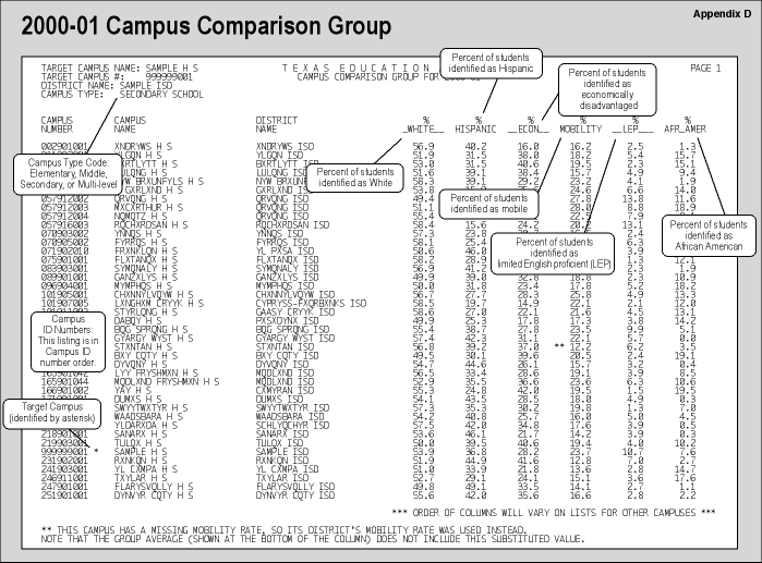 For a description of each aspect of the Comparable Improvement Report, see Appendix D. (Source: PEIMS, Oct. 2000, and June 2000; TEA Division of Student Assessment)