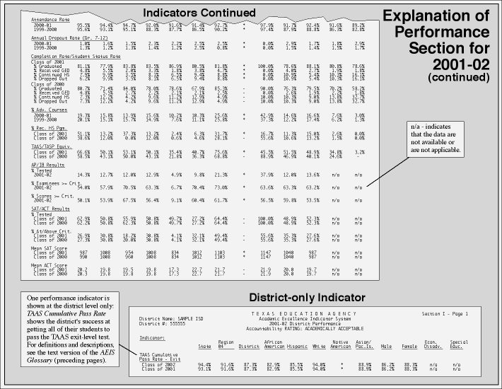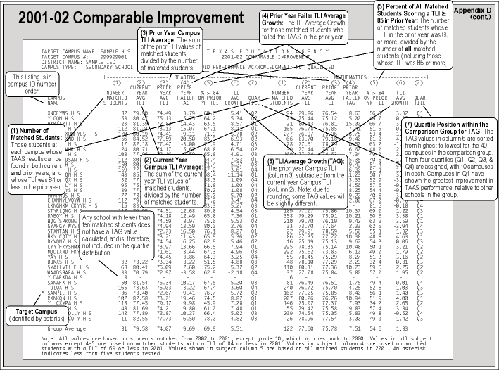 For a description of each aspect of the Comparable Improvement Report, see Appendix D. See also Gold Performance Acknowledgment. (Source: PEIMS, Oct. 2001, and June 2001; TEA Division of Student Assessment)